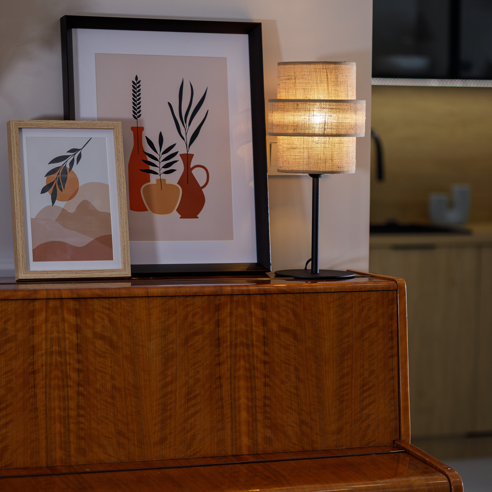 CALISTO JUTA to doskonały wybór dla wszystkich, którzy cenią sobie unikalny design i funkcjonalność. Jej najbardziej charakterystycznym elementem jest abażur, składający się z dwóch różnej wielkości walcy. Ta nietypowa konstrukcja tworzy harmonijne połączenie, które przyciąga wzrok i dodaje elegancji każdemu wnętrzu. Również funkcjonalność lampy CALISTO JUTA jest na najwyższym poziomie. Dzięki swojej konstrukcji abażur równomiernie rozprasza światło, co daje przyjemne i delikatne oświetlenie w pomieszczeniu. To idealne rozwiązanie zarówno do stworzenia romantycznej atmosfery w sypialni, jak i do zapewnienia komfortowego oświetlenia w salonie czy jadalni. Oprócz tego, rodzina lamp CALISTO JUTA oferuje różnorodne rodzaje produktów, takie jak: wiszące, podłogowa i kinkiet. Dzięki temu masz możliwość dopasowania oświetlenia do swoich preferencji i potrzeb. Lampy wiszące świetnie sprawdzą się nad stołem w jadalni, podłogowe lampy będą doskonałym elementem dekoracyjnym w salonie, a kinkiety idealnie oświetlą hol lub sypialnię. Lampa CALISTO JUTA to połączenie stylu, funkcjonalności i wysokiej jakości wykonania. Jej klasyczny design doskonale wpisuje się w różne aranżacje wnętrz, dodając im niepowtarzalnego charakteru i uroku. Dzięki niej stworzysz unikalną atmosferę w swoim domu i cieszyć się pięknem oświetlenia.