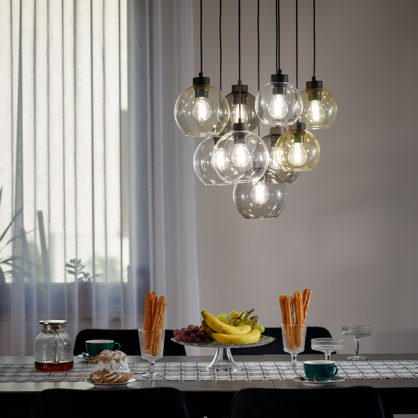 W rodzinie CUBUS znajdziemy wiszące lampy pojedyncze składające się z klosza o średnicy 30cm, dostępne w kilku różnych kolorach - transparentnym, bursztynowym, grafitowym. Możemy także znaleźć lampy wiszące z 7, 9, 6 lub 8 kloszami, gdzie mieszanka różnokolorowych kloszy tworzy niepowtarzalne kompozycje. Dodatkowo dostępne są kinkiety, w tym minimalistyczny, lecz urokliwy kinkiet, który idealnie wkomponuje się w różnorodne wnętrza. Nietypową cechą większości lamp z tej kolekcji jest możliwość regulacji wysokości zawieszenia klosza, co pozwala każdemu stworzyć własną, unikalną aranżację. Lampy z 7 i 9 kloszami posiadają okrągłą podsufitkę i charakteryzują się różnorodnymi kolorami.