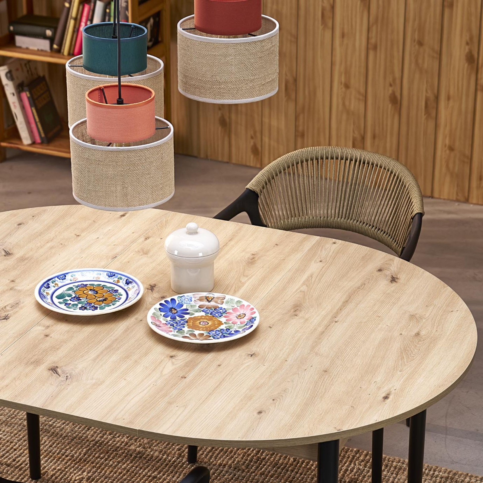 Rodzina lamp Duo to wyjątkowe lampy wiszące abażurowe, które zapewnią niepowtarzalny i stylowy wygląd Twojemu wnętrzu. Ich charakterystyczną cechą jest kolorowy element abażura w odcieniach bieli, zieleni, pomarańczu oraz brązu, który został połączony z naturalną jutą. Kolorowy abażur stanowi efektowny akcent, który podkreśla nowoczesny design lampy, dodając jej przyjemnego, przytulnego charakteru. Odcienie zieleni wprowadzą do Twojego wnętrza odrobinę świeżości i harmonii, natomiast pomarańcz i brąz dodadzą ciepła i przytulnego, rustykalnego klimatu. Materiałem, który został wykorzystany do stworzenia abażurów, jest naturalna juta. Dzięki temu lampy Duo są nie tylko piękne, ale też ekologiczne i przyjazne dla środowiska. Juta jest naturalnym włóknem roślinnym i doskonale komponuje się z innymi materiałami, nadając im naturalny urok i niepowtarzalny charakter. Rodzina lamp Duo doskonale sprawdzi się w różnych pomieszczeniach, takich jak salon, sypialnia czy jadalnia. Ich subtelne światło stworzy przyjemną i relaksującą atmosferę, a kolorowe abażury dodadzą oryginalności i wyrazistości całemu otoczeniu.