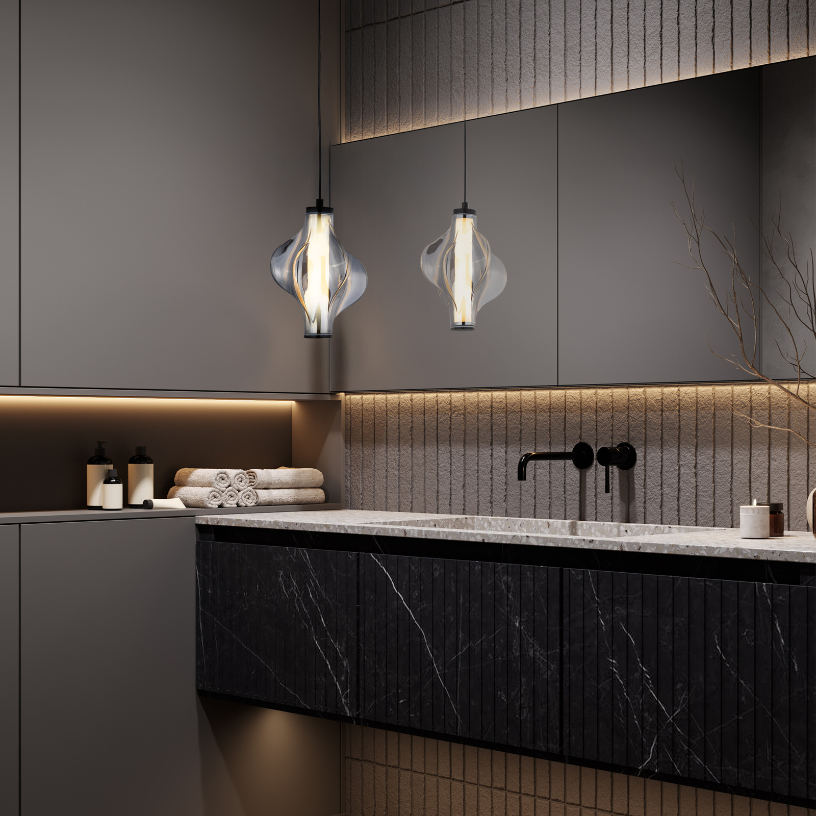 Rodzina lamp ELVA to nowoczesne oświetlenie, które łączy elegancję geometrycznych form z subtelną dekoracyjnością szkła. Charakterystyczne szklane detale w kształcie rombów pięknie rozpraszają światło, tworząc we wnętrzu przytulną i wyrafinowaną atmosferę. Kolekcja dostępna jest w dwóch wariantach kolorystycznych – Brass oraz Black – co pozwala dopasować lampę do indywidualnego charakteru aranżacji. Subtelne, złociste akcenty w wersji Brass wprowadzają ciepło i elegancję, natomiast wariant Black podkreśla nowoczesny i minimalistyczny charakter przestrzeni. W skład rodziny wchodzą różnorodne modele – od pojedynczych, minimalistycznych lamp wiszących LED 8W, przez smukłe, wieloelementowe wersje LED 22W, aż po efektowne kompozycje poziome LED 30W, które doskonale sprawdzają się nad stołem w jadalni czy wyspą kuchenną. Dzięki zastosowaniu energooszczędnej technologii LED, lampy ELVA gwarantują nie tylko piękne, ale i praktyczne oświetlenie, idealne zarówno do wnętrz mieszkalnych, jak i eleganckich przestrzeni komercyjnych.