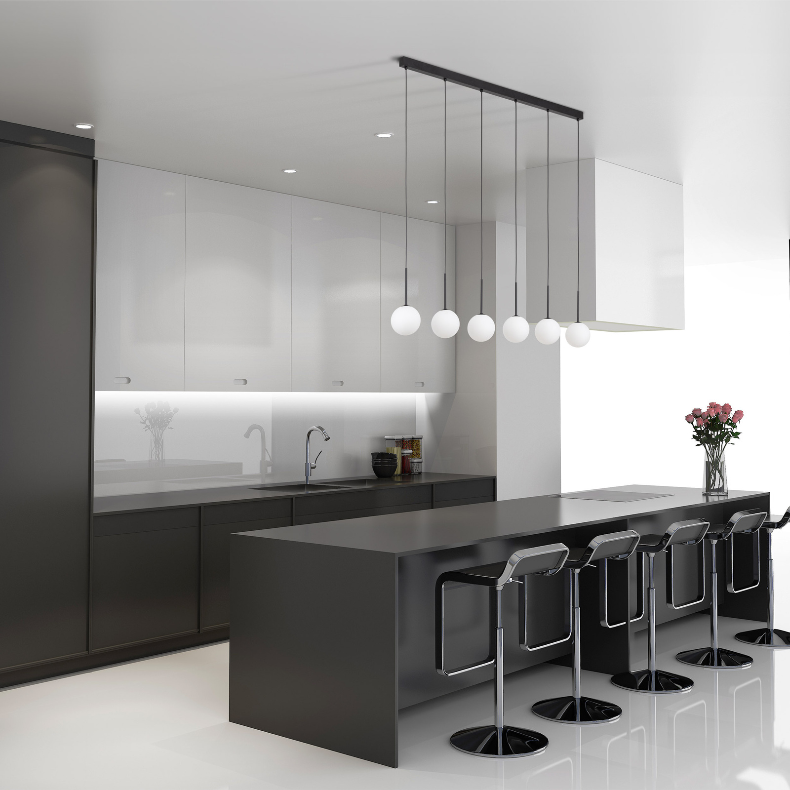 Klasyczne i ponadczasowe lampy z kolekcji MARTIN bazują na szklanej, białej kuli i czarnej oprawie. Będą pasować do wnętrz urządzonych w stylu nowoczesnym, ale także loftowym i minimalistycznym. Sprawdzą się zarówno w kuchni, jadalni, jak i w salonie. Można je również wykorzystać w pomieszczeniach komercyjnych. Zastosowany klosz sprawia, że światło jest delikatnie przytłumione i nie ma efektu oślepienia. Lampy z kolekcji MARTIN bazują na jednym, czterech bądź sześciu źródłach światła.